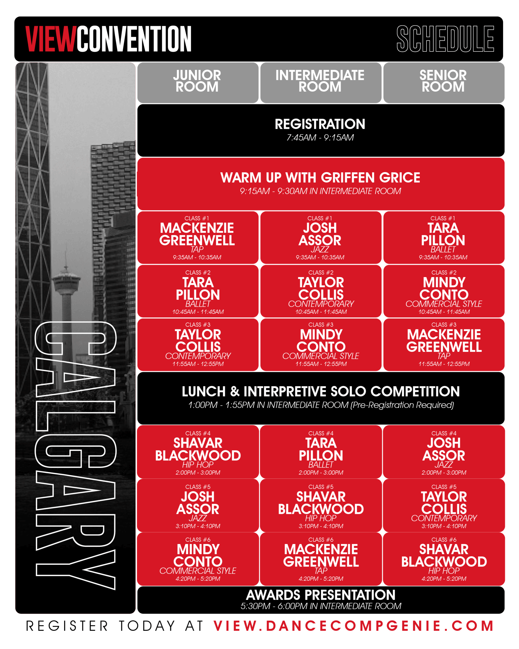 Reservations: Reservations for the event can be made by individual attendees directly with the hotel by calling (587) 885-2288 and mentioning the “VIEW Dance Challenge” group. Booking link HERE
