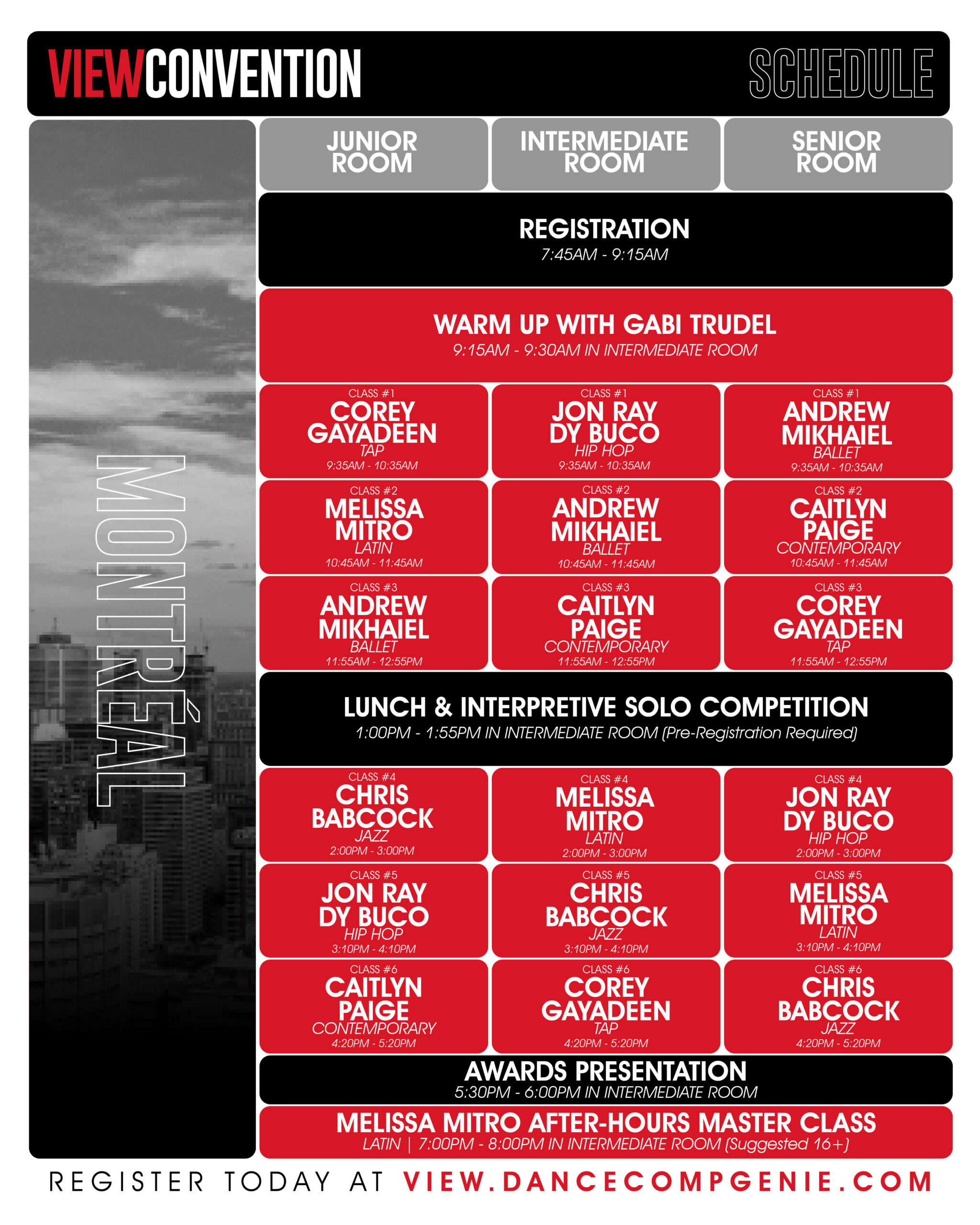 Reservations: Reservations can be made directly by calling (514) 878-9888 and by booking under the “VIEW Dance Challenge” or through the booking link HERE.