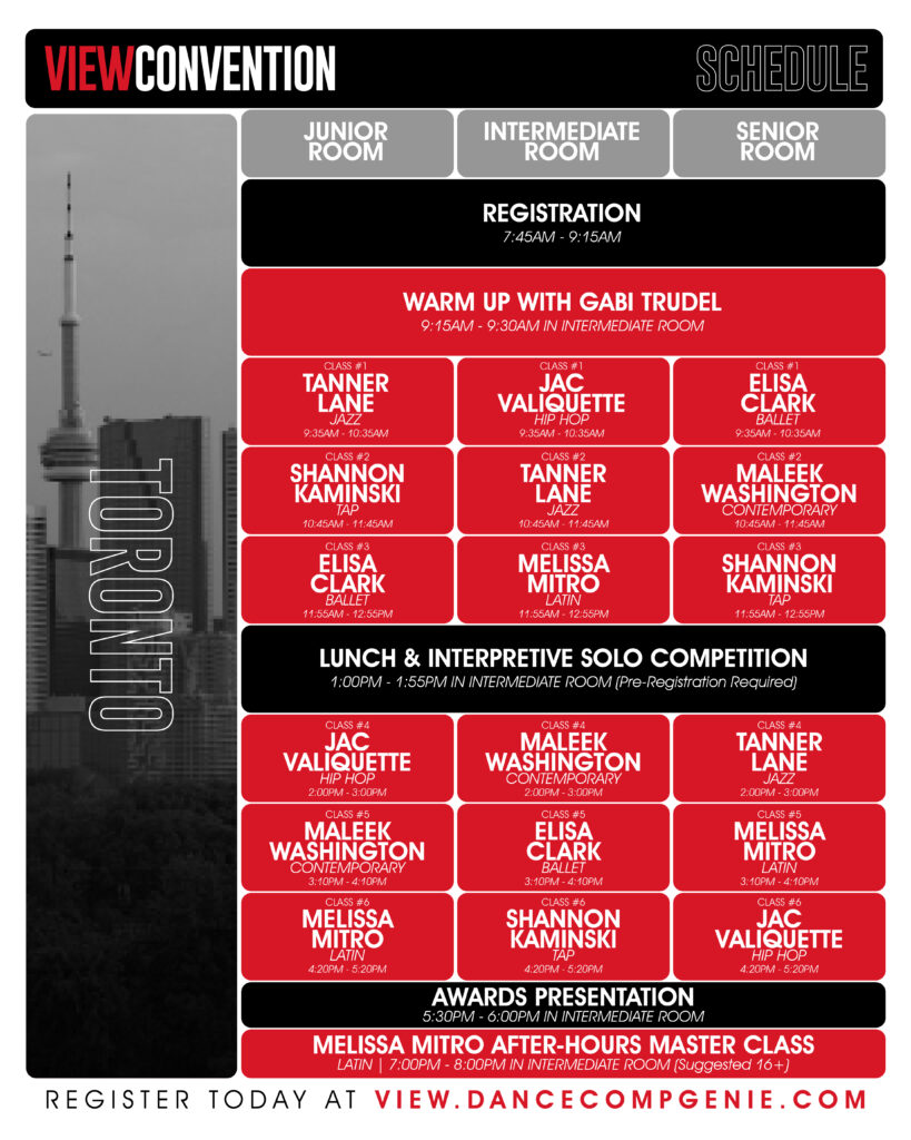 Reservations: Reservations are on a first-come first-served basis, and can be made directly by calling (416) 343-1234 and booking under the “VIEW Dance Challenge” group. Booking link HERE